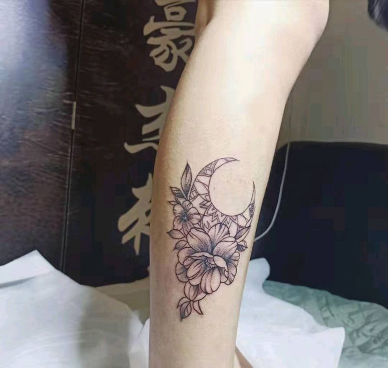 素花一朵纹身图片_腿部点刺纹身图案