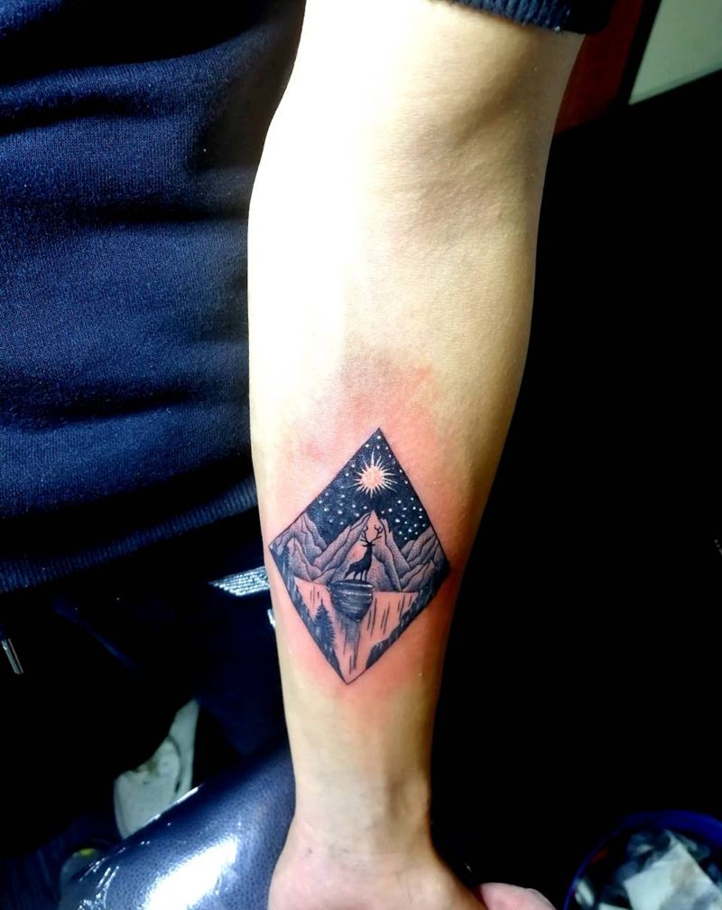 当前位置: 首页 >浙江省湖州市纹身店-豪杰刺青纹身图案>鹿纹身图片_手臂几何纹身图案