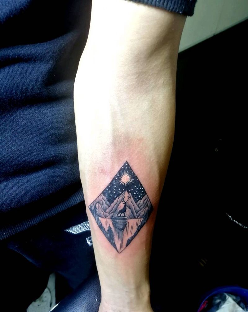 当前位置: 首页 >浙江省湖州市纹身店-豪杰刺青纹身图案>鹿纹身图片_手臂几何纹身图案