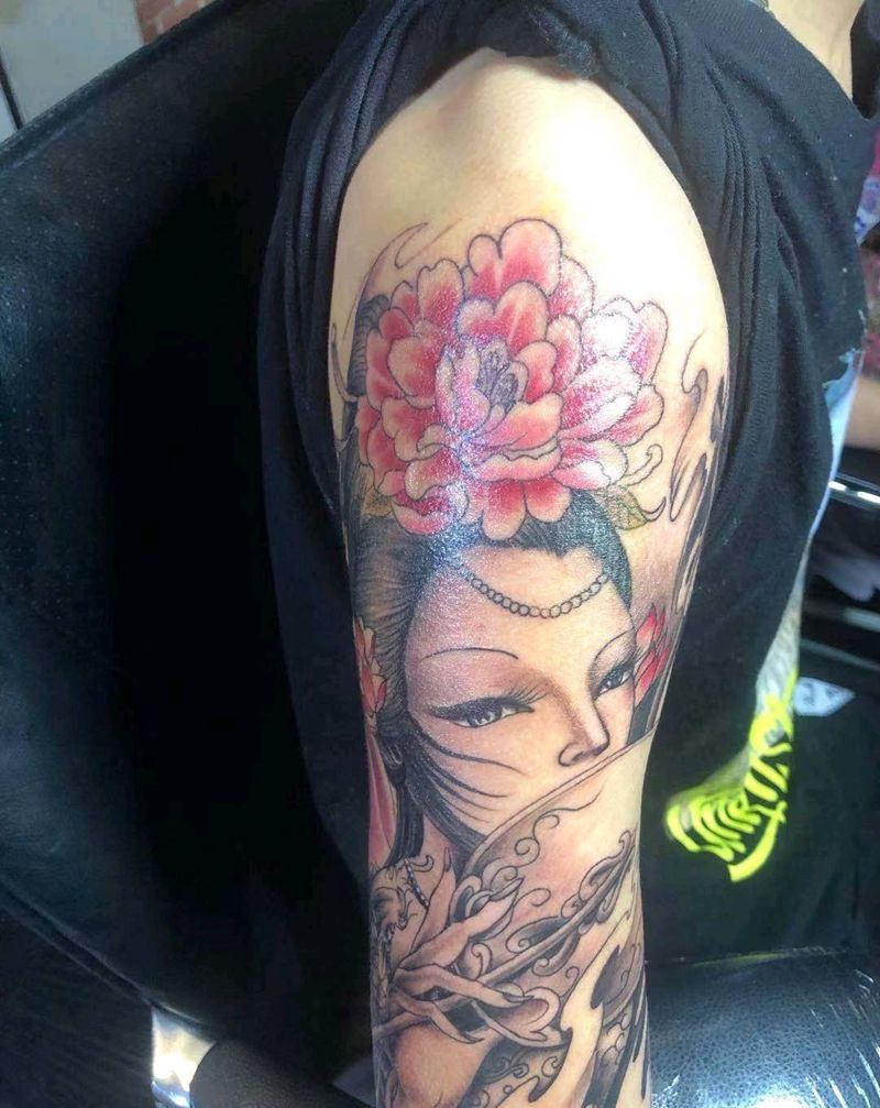 当前位置: 首页 >浙江省湖州市纹身店-豪杰刺青纹身图案>艺妓纹身图片_手臂新传统纹身图案