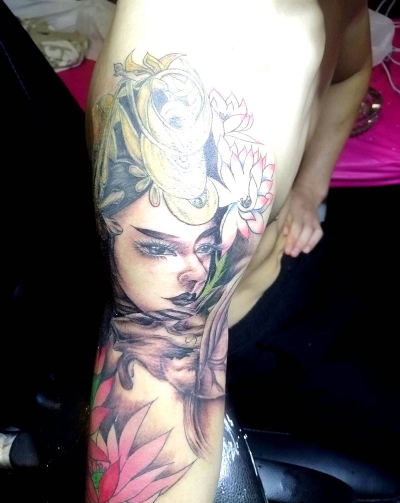 当前位置: 首页 >浙江省湖州市纹身店-豪杰刺青纹身图案>美女纹身图片_手臂新传统纹身图案