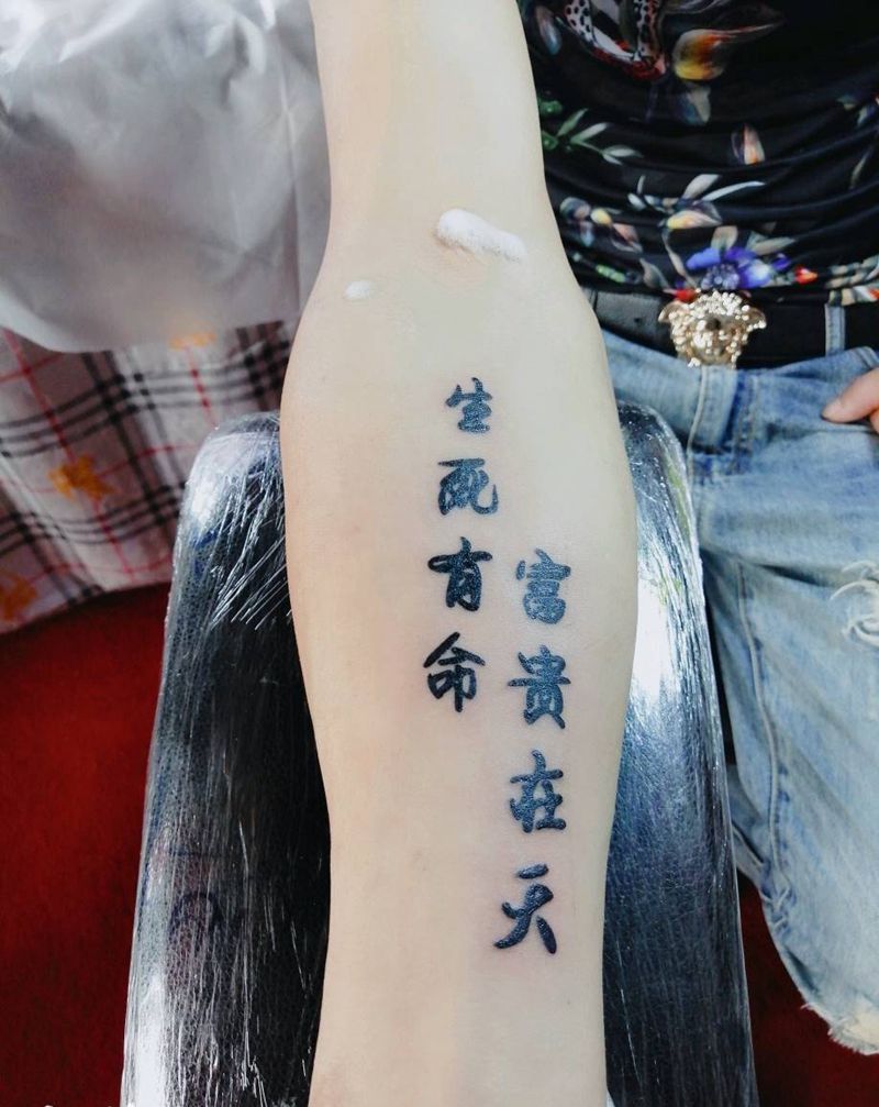 当前位置: 首页 >浙江省湖州市纹身店-豪杰刺青纹身图案>生死有命富贵在天纹身图片_手臂图腾纹身图案