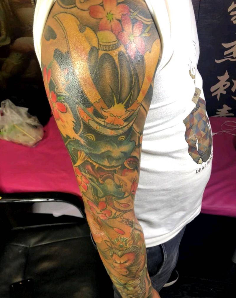 当前位置: 首页 >浙江省湖州市纹身店-豪杰刺青纹身图案>彩色花臂竣工纹身图片_手臂新传统纹身图案