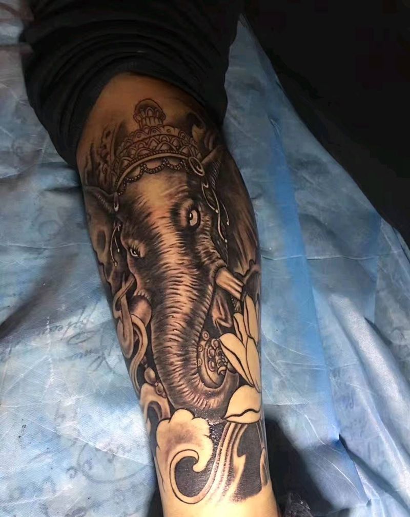 当前位置: 首页 >浙江省湖州市纹身店-豪杰刺青纹身图案>象神纹身图片_腿部新传统纹身图案