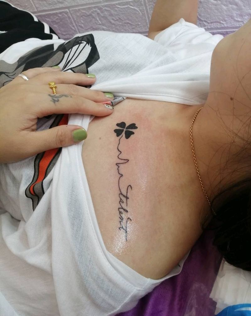 幸运四叶草纹身图片_胸部图腾纹身图案