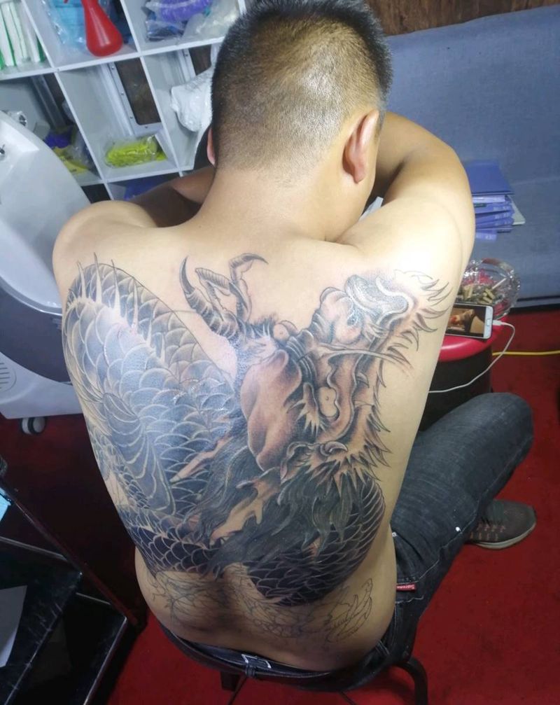 满背龙遮盖纹身图片_背部新传统纹身图案