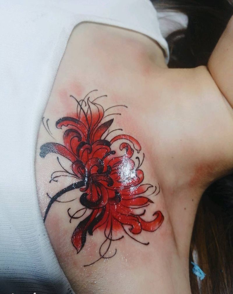 • 女性大花胸纹身_43张霸气漂亮的女性大花胸纹身图案作品