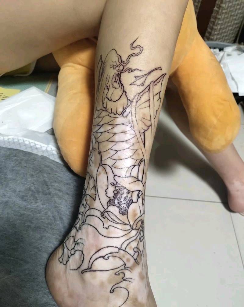 遮盖疤痕下次彩色纹身图片_腿部新传统纹身图案
