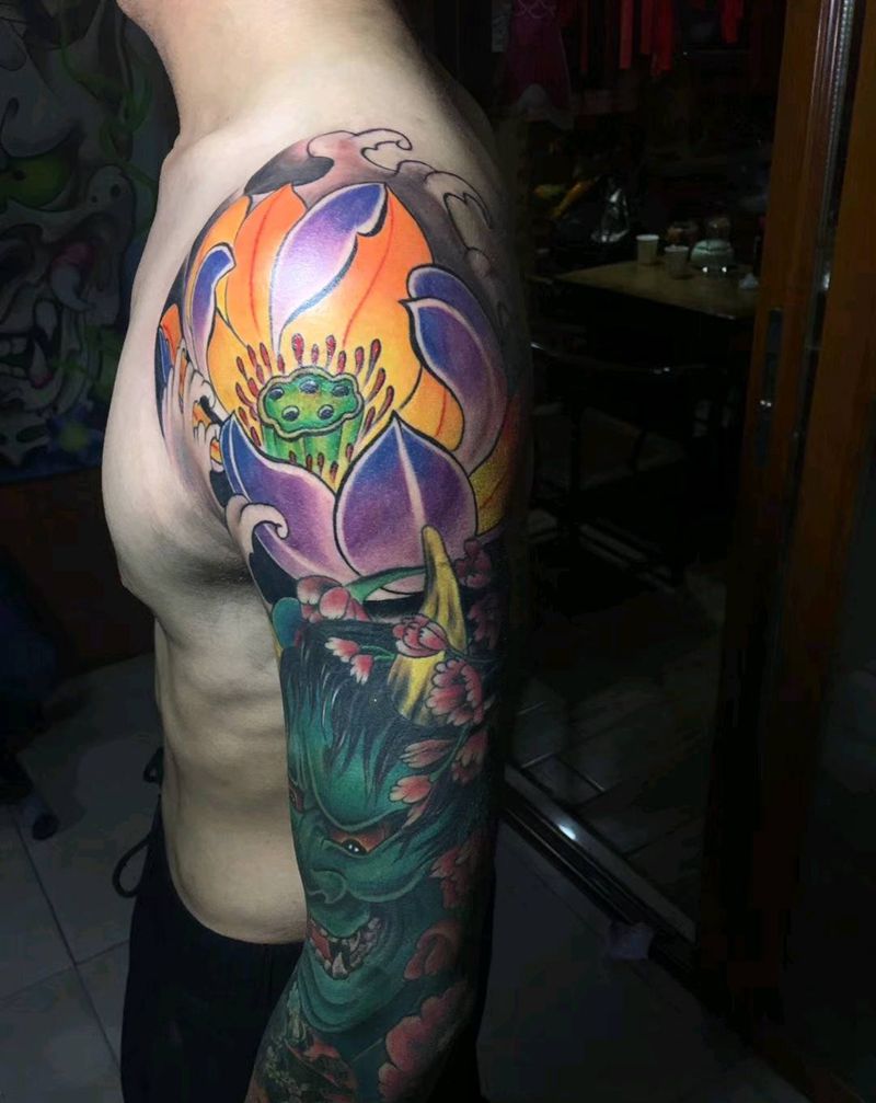 一组15张莲花纹身手