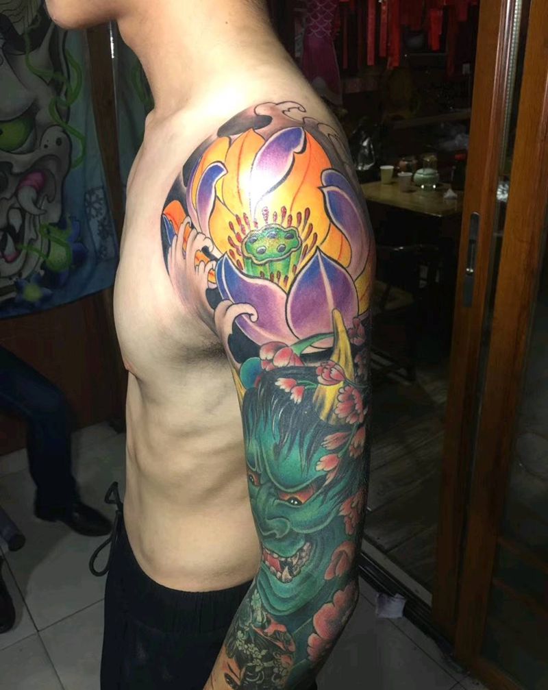 当前位置: 首页 >浙江省湖州市纹身店-豪杰刺青纹身图案>花臂小伙子纹身图片_手臂新传统纹身图案