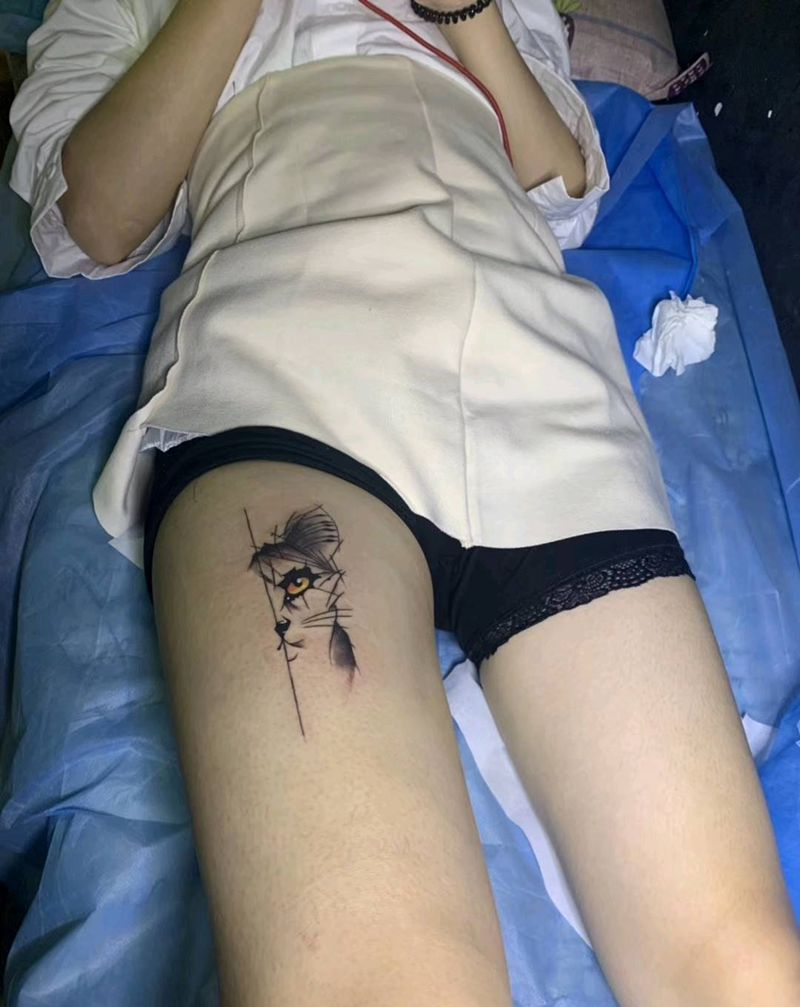 小美女性感纹身纹身图片_腿部腰部几何纹身图案