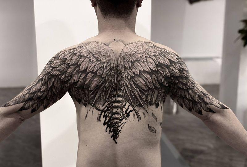 大翅膀纹身图片_背部欧美写实纹身图案