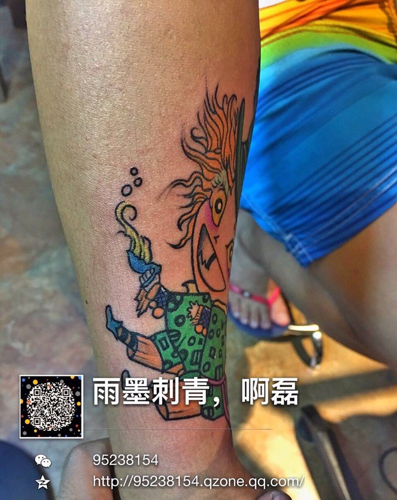• T包小腿吹火男+阿多福纹身图片_腿部老传统新传统吹火男阿