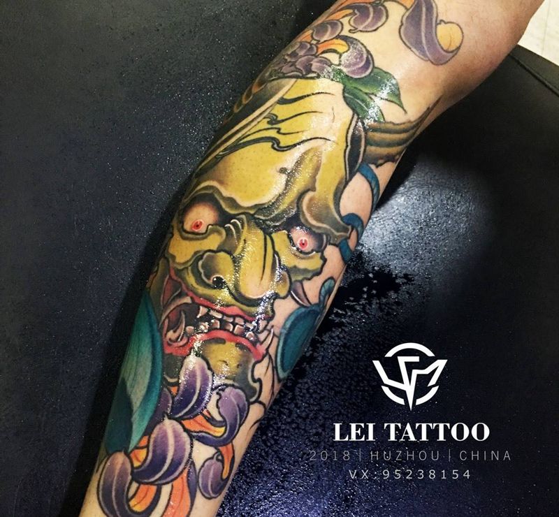 • T网红王老大花腿龙纹身图片_腿部新传统纹身图案