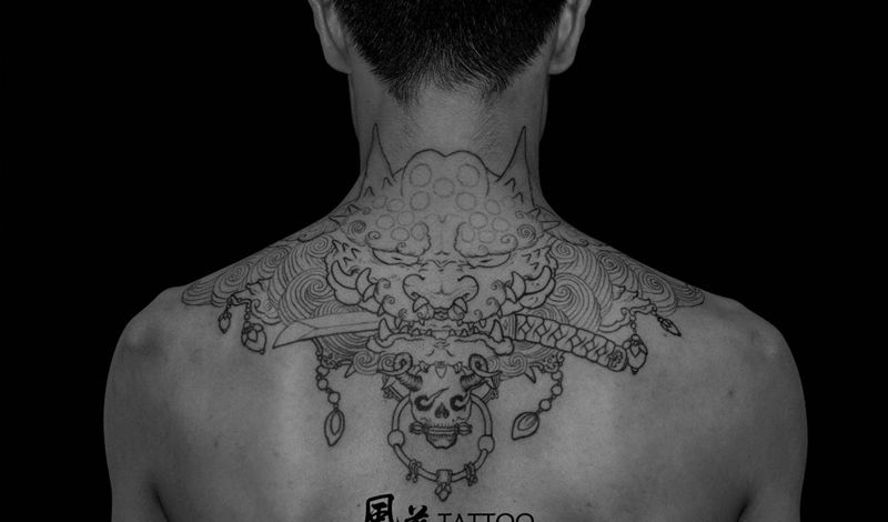 黑灰满背纹身图案