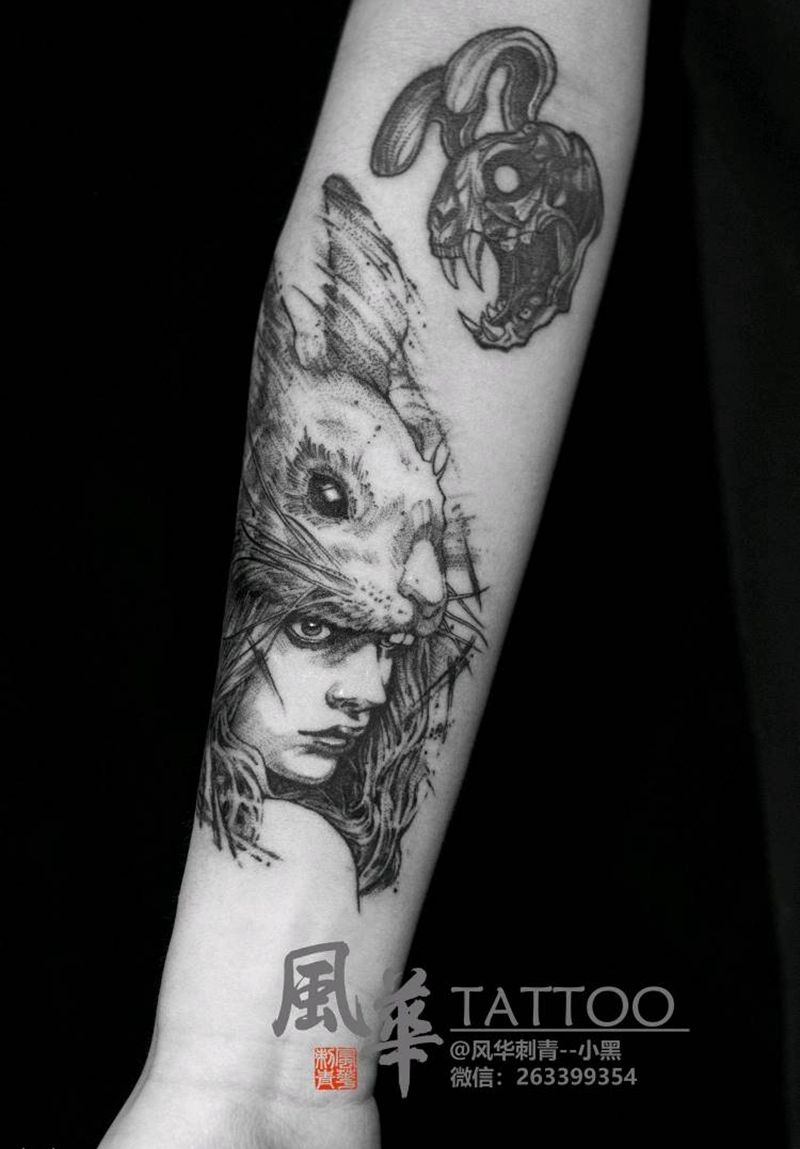 兔女郎??纹身图片_手部手臂点刺欧美写实兔子纹身图案