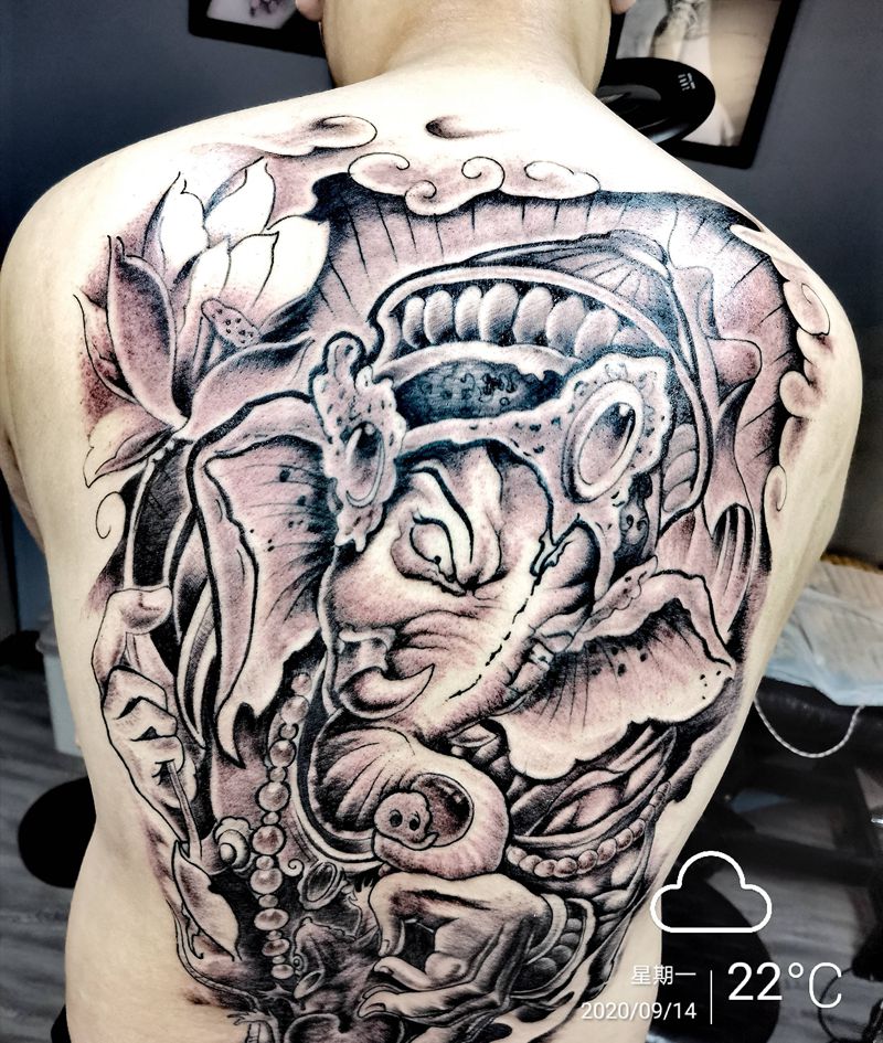 黑灰满背纹身图案