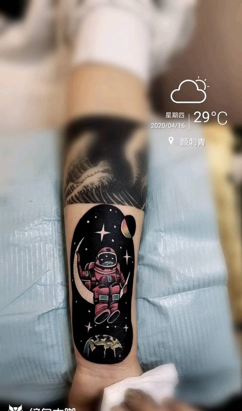 当前位置: 首页 >浙江省绍兴市纹身店-颜刺青·神龙店纹身图案>宇航员纹身图片_手臂纹身图案