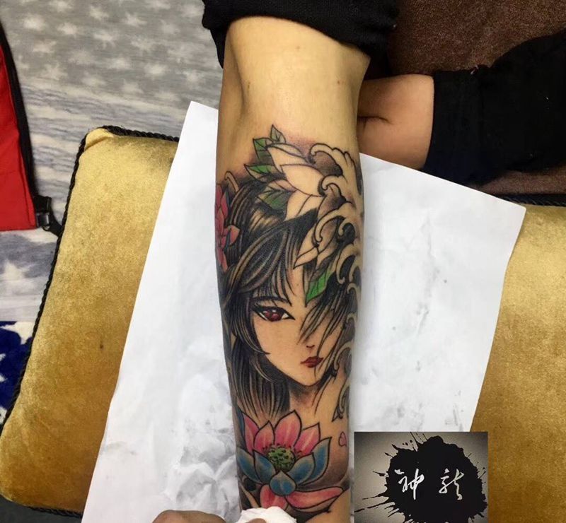 卡通少女纹身图片_成品手臂卡通纹身图案