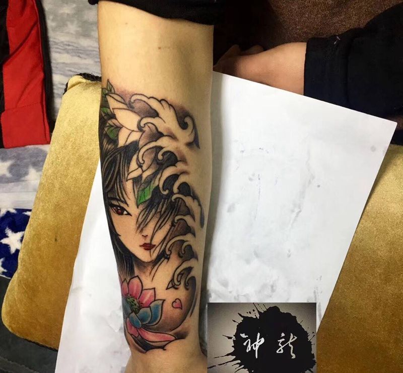 卡通少女纹身图片_成品手臂卡通纹身图案