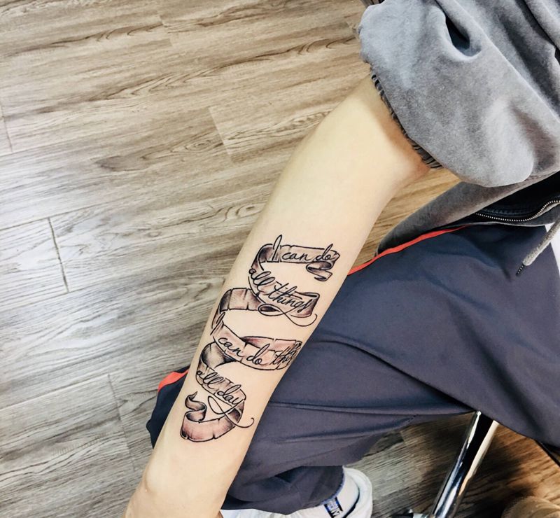 当前位置: 首页 >浙江省绍兴市纹身店-颜刺青·神龙店纹身图案>丝带+英文纹身图片