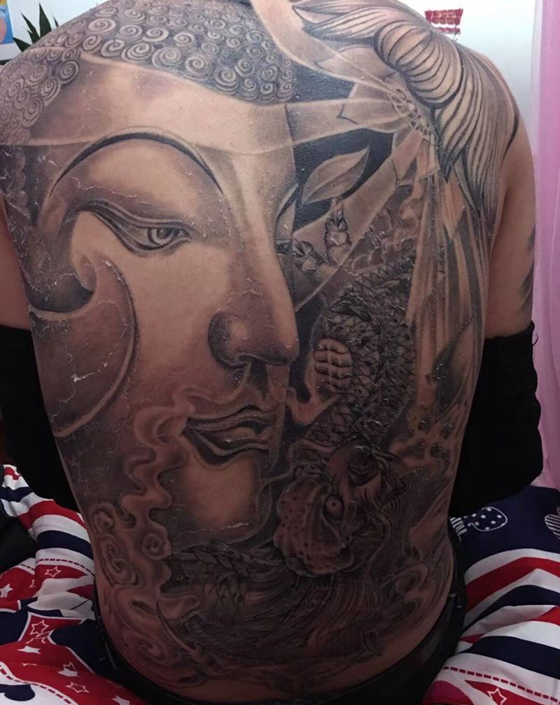当前位置: 首页 >浙江省绍兴市纹身店-颜刺青·神龙店纹身图案>满背恢复中纹身图片