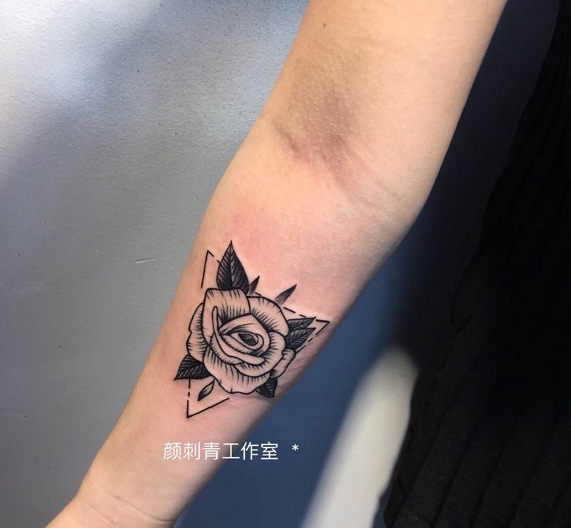 • 手背潮流时尚的玫瑰花眼睛纹身图案