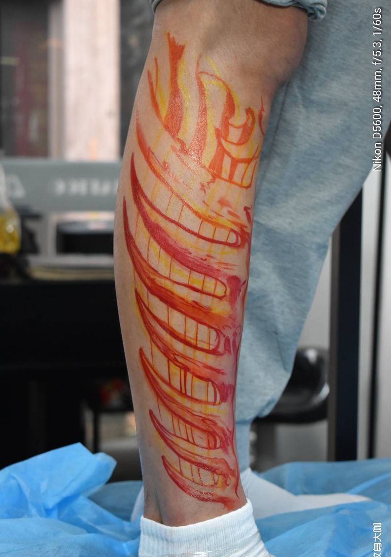 • T网红王老大花腿龙纹身图片_腿部新传统纹身图案