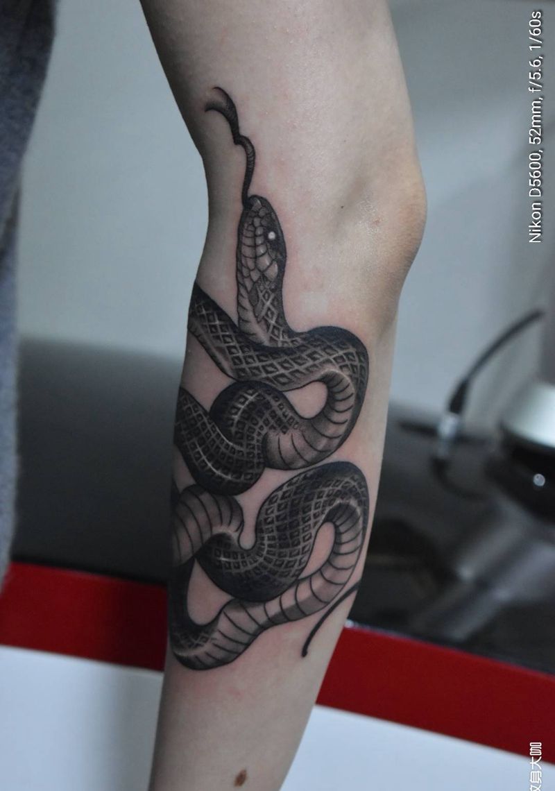 当前位置: 首页 >浙江省湖州市纹身店-硬茧刺青纹身图案>双头蛇纹身图片_手臂欧美写实点刺纹身图案