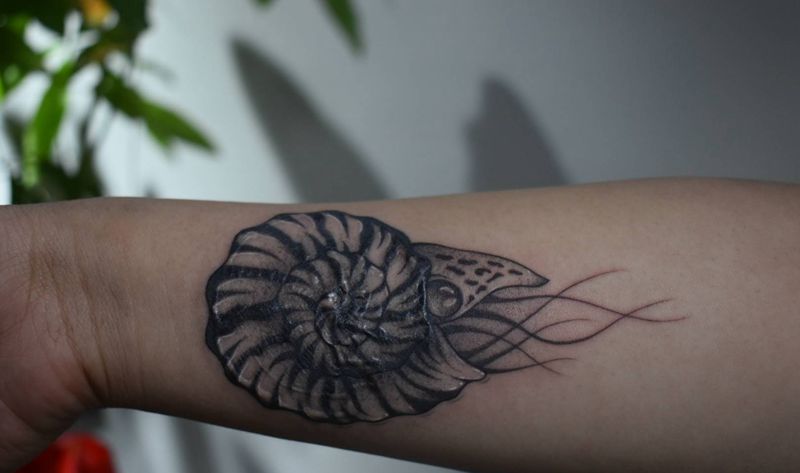 小小鹦鹉螺纹身图片_手臂点刺欧美写实纹身图案