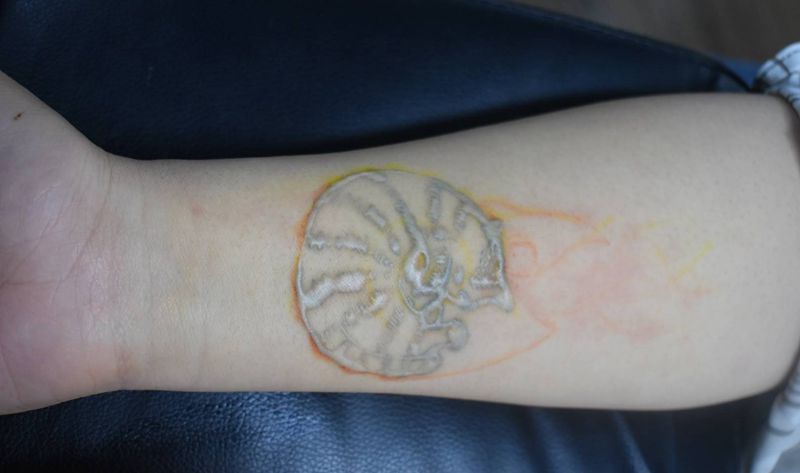 当前位置: 首页 >浙江省湖州市纹身店-硬茧刺青纹身图案>小小鹦鹉螺纹身图片_手臂点刺欧美写实纹身图案