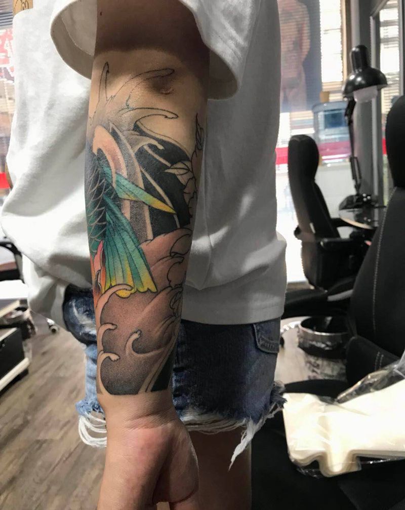 当前位置: 首页 >浙江省嘉兴市纹身店-野风纹身纹身图案>鱼 荷花纹身图片