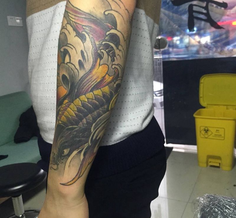 当前位置: 首页 >浙江省嘉兴市纹身店-大潮刺青纹身图案>鲤鱼包小臂纹身图片