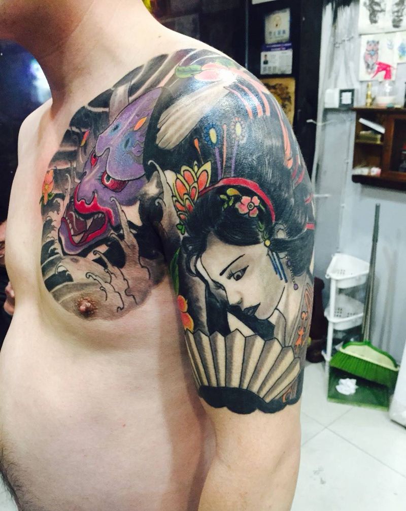当前位置: 首页 >浙江省嘉兴市纹身店-大潮刺青纹身图案>般若-艺妓纹身图片