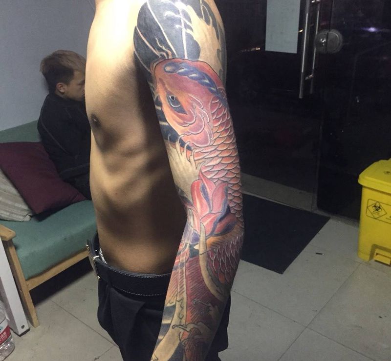 当前位置: 首页 >浙江省嘉兴市纹身店-大潮刺青纹身图案>花臂鲤鱼纹身图片