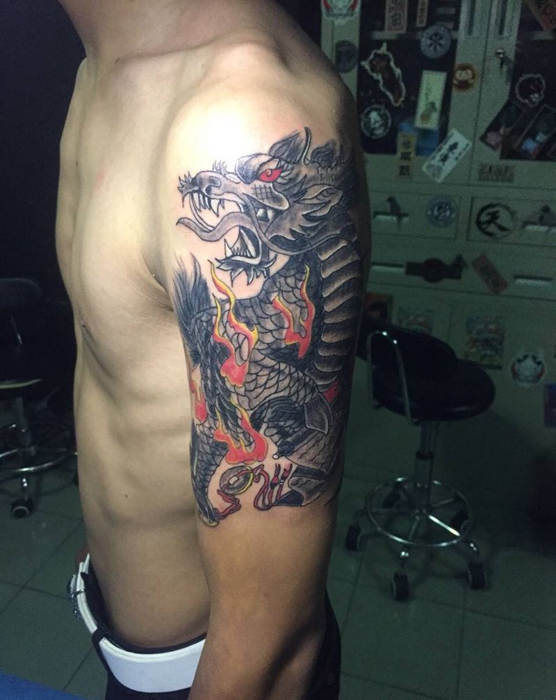 • T网红王老大花腿龙纹身图片_腿部新传统纹身图案