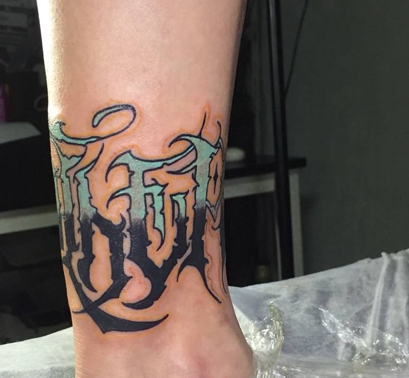 • T包小腿吹火男+阿多福纹身图片_腿部老传统新传统吹火男阿