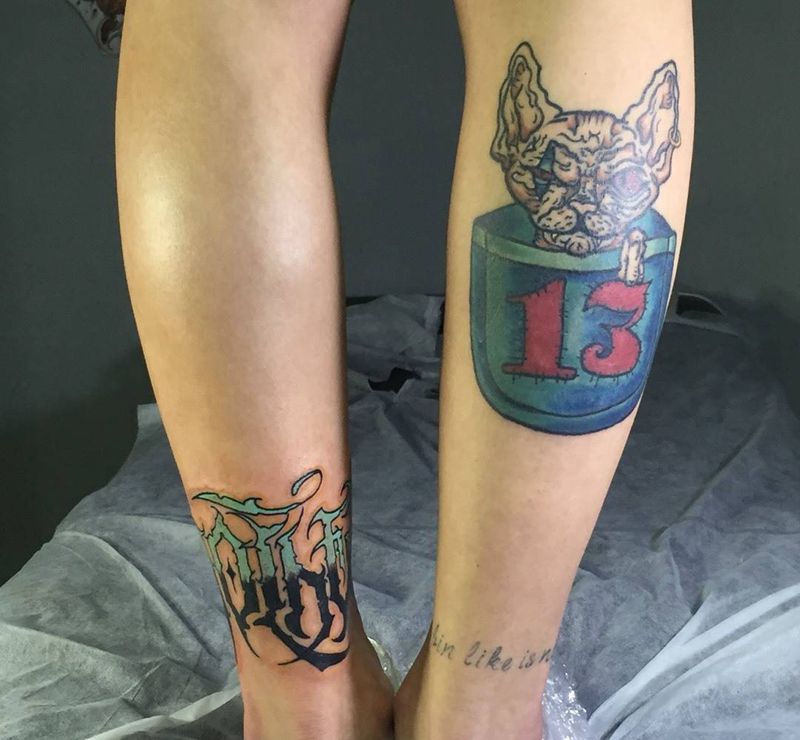 • T包小腿吹火男+阿多福纹身图片_腿部老传统新传统吹火男阿