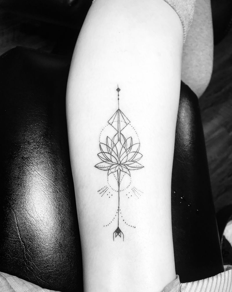 莲花纹身图片_腿部点刺几何纹身图案