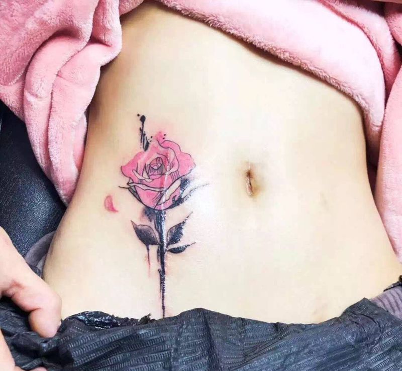 • T关于私处得爱!纹身图片_成品腹部清新字符图腾纹身图案