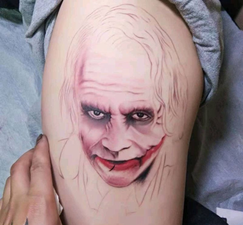 • T包小腿吹火男+阿多福纹身图片_腿部老传统新传统吹火男阿
