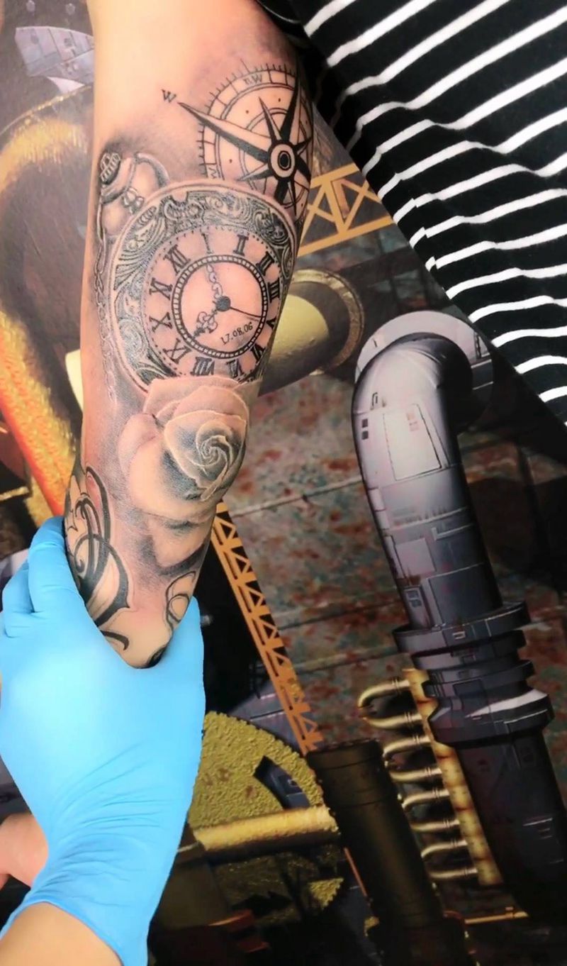 写实怀表纹身图片_欧美纹身图案