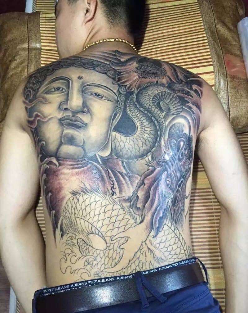 黑灰满背纹身图案