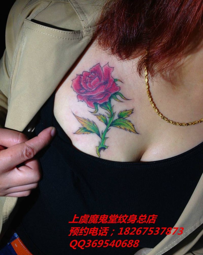 • 女性大花胸纹身_43张霸气漂亮的女性大花胸纹身图案作品
