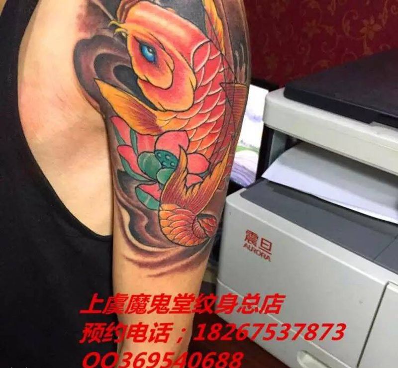 当前位置: 首页 >浙江省绍兴市纹身店-上虞魔鬼堂纹身工作室纹身图案>锦鲤完工纹身图片
