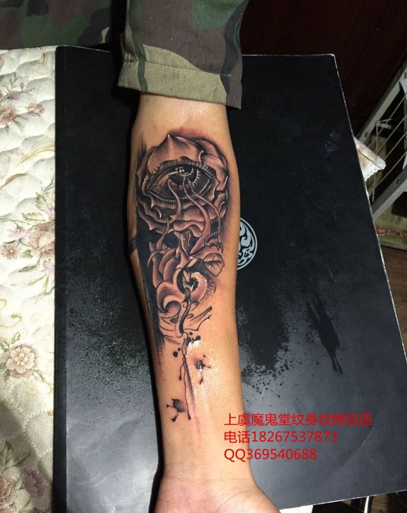 • 手背潮流时尚的玫瑰花眼睛纹身图案