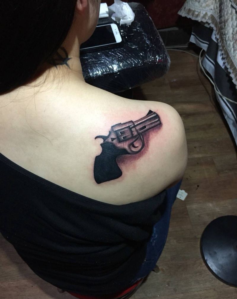 当前位置: 首页 >浙江省绍兴市纹身店-上虞魔鬼堂纹身工作室纹身图案>美女手枪,完成纹身图片