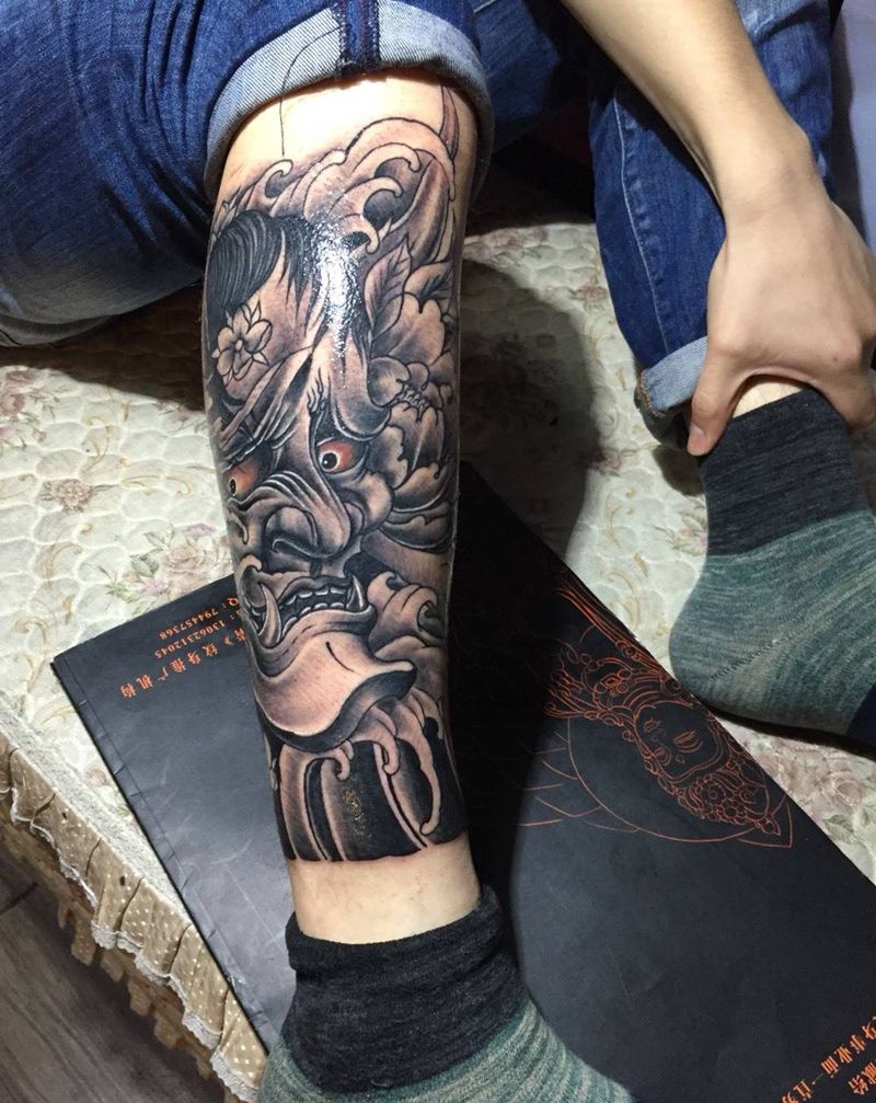• T网红王老大花腿龙纹身图片_腿部新传统纹身图案