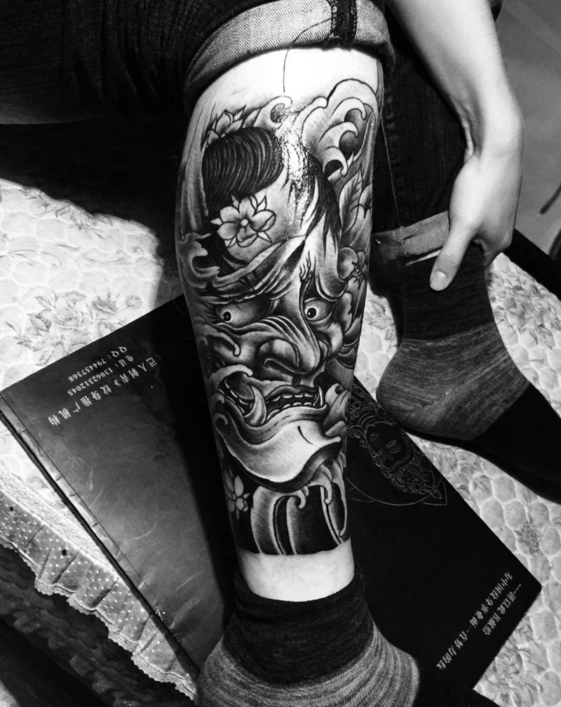 • T网红王老大花腿龙纹身图片_腿部新传统纹身图案