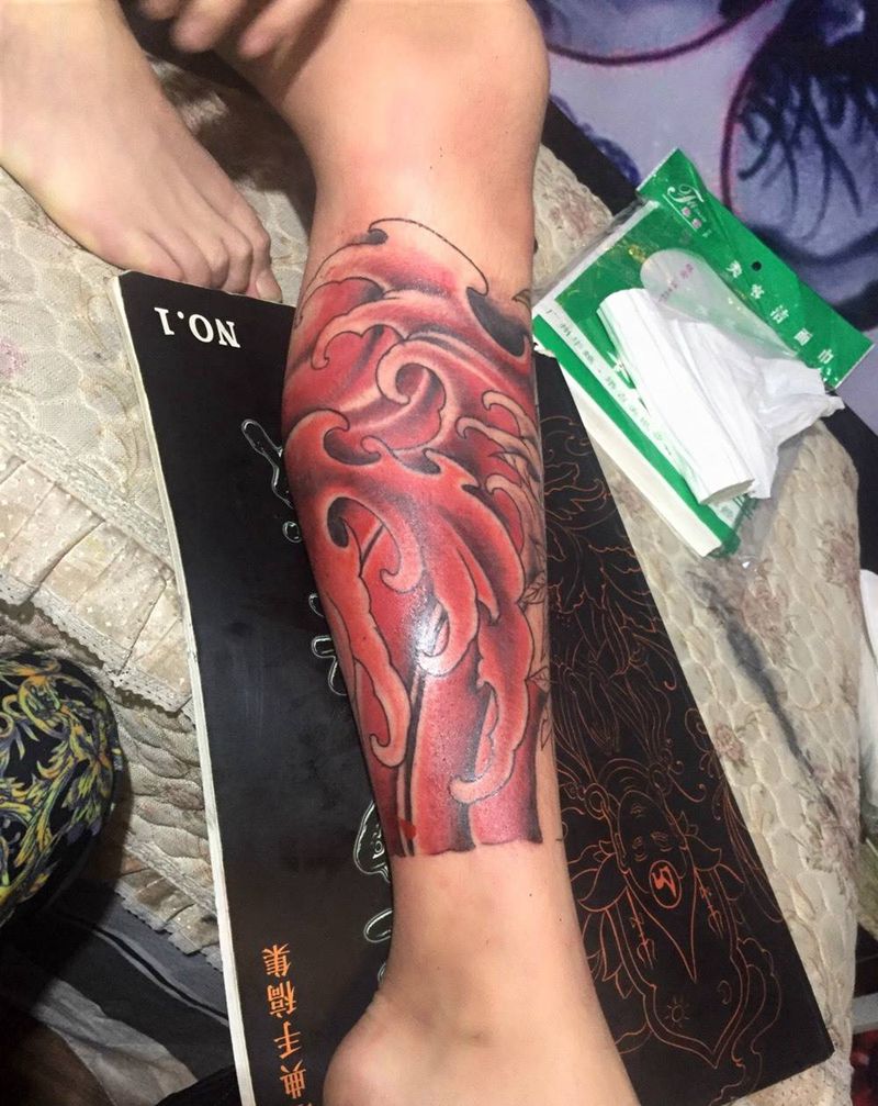 • T网红王老大花腿龙纹身图片_腿部新传统纹身图案